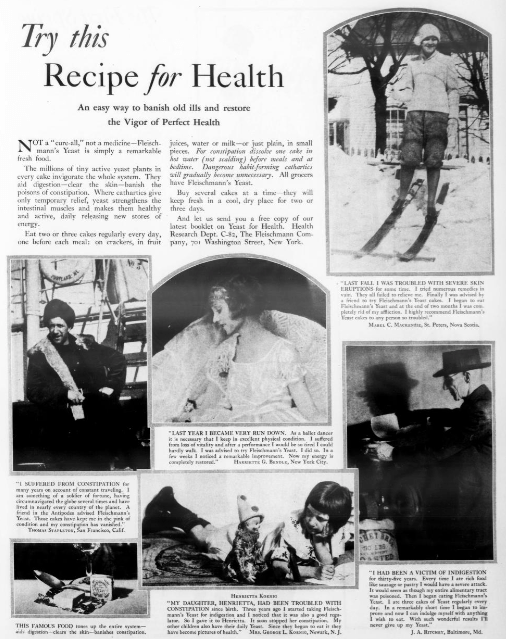 February contained a lot of dentistry as well yet it seemed that another health concern had risen at the time. There were multiple advertisements that were related to indigestion and constipation. Health advertisements for this time mostly targeted foods and medications that were intended for the gut such as Yeast and Nujol. These advertisements occurred more than once. Yeast is a product that is still used today but is not really advertised anymore. Most households contain it and it is a known product for baking.
