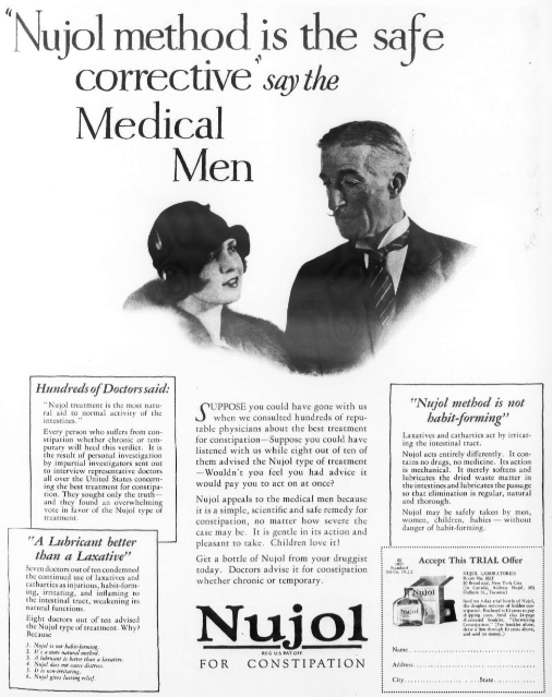 Nujol on the other hand was used as a laxative back then. Now, it is mostly kept in laboratories and hardly encouraged for its previous use.